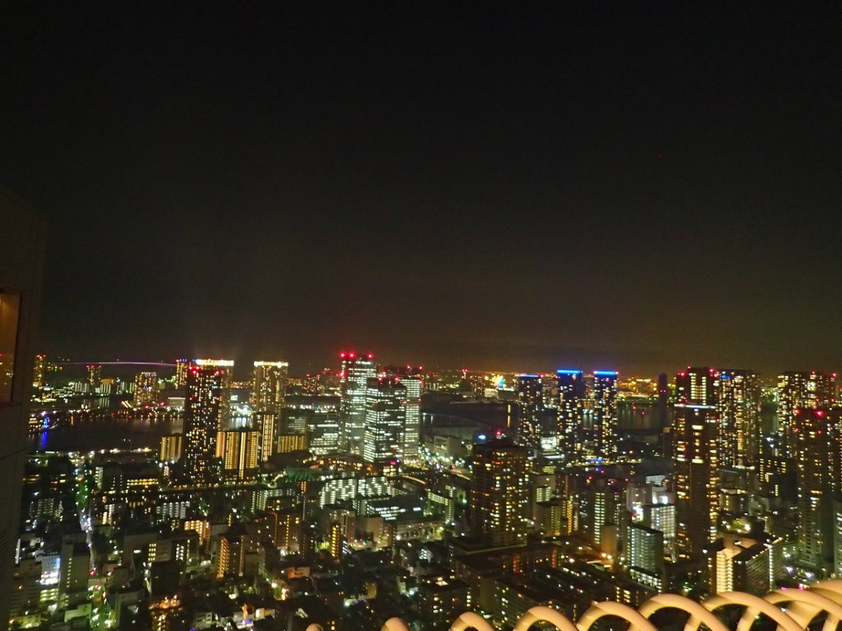 47階、地上221Mから壮大なパノラマ夜景を一望などの案内があるテラス席ですが、ぐるっと白い柵に囲まれていて、まるでケージの中にいるようで、ちょっと微妙でした。安全上の理由から仕方がないのでしょうが、座ったままでは柵に阻まれて夜景も台無しです。