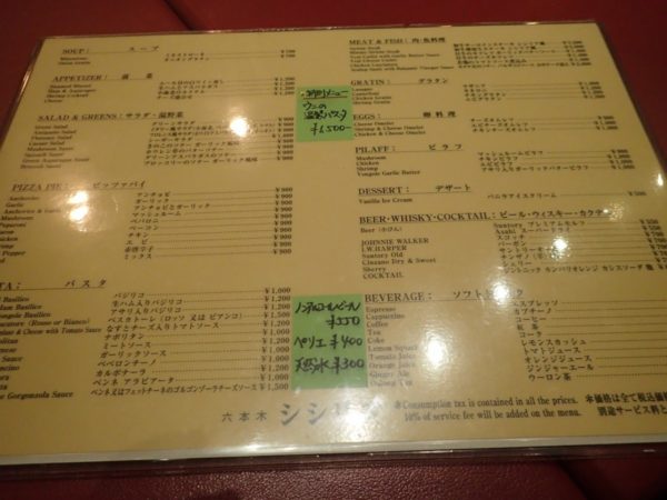 価格は税込みだけど10%の「サービス料が付くので同じこと。