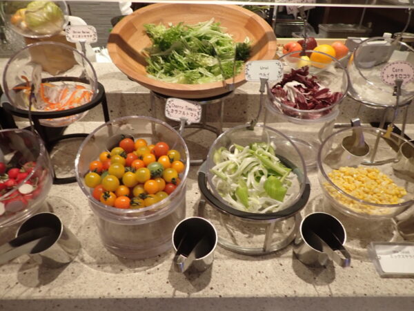 バフェ形式でしたが、お料理は一通りそろっていてホテルの朝食らしさはありました。フレッシュな野菜の種類はとても多くうれしかったです。