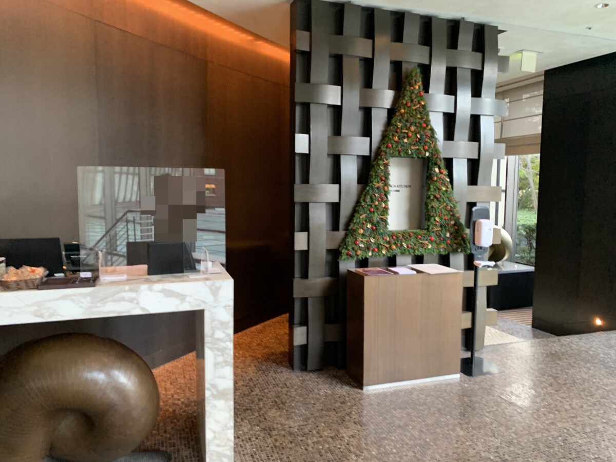 2階のエレベーターホール。赤いリンゴがテーマらしく、レストラン内にもあちこちにありました。