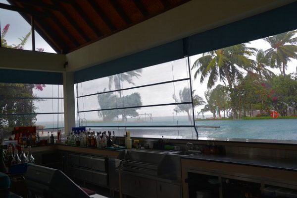 おまけに朝は停電、もちろん電話もつながらないので、携帯電話からフロントに電話、ウォーターヴィラだと歩いていくのも遠いし。