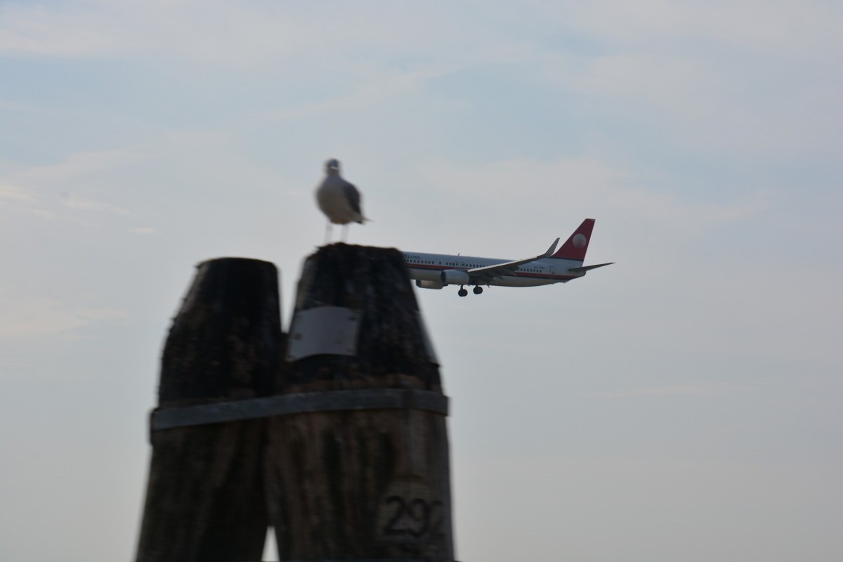どちらの席からベニスが見えるかと、前に座っていた男性のCAに聞いたら、最初は「わからない」との返答、でもまずいと思ったのか、電話でパイロットに確認し、「右側」と教えてくれました。