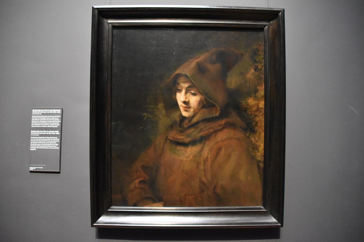 レンブラントの息子ティトゥスを描いたものである。フランシスコ修道会の修道衣に身を包んだ男が、視線を落とし、深く考え込んでいる。アッシジの聖フランチェスコを描いた可能性もある。フランシスコ修道会の規則に従い、修道僧たちは貧しく慎ましやかな生活を送っていた。若い男の粗末な身なりや、遠くに視線を馳せるような表情から、このような規律正しい生活が見て取れる。これこそが、本作品の狙いである。男の背景は、ぼんやりとしか描かれていない。1668年、ティトゥスは、娘ティティアの誕生を待たずしてこの世を去った。