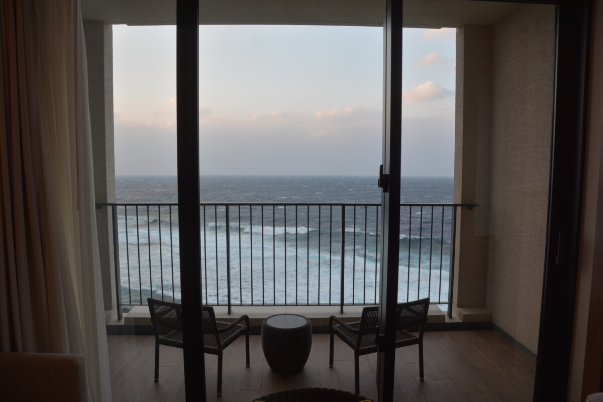 ホテルの一番奥の両サイドにある部屋です。前日にできたらオーシャンビューコーナーにしてくれるように頼んでいたので、そうなりました。またまたうれしい♪