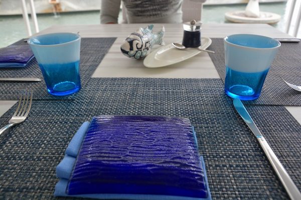 お魚までブルーグラデーションという凝りようのBLUのテーブルセッティング。