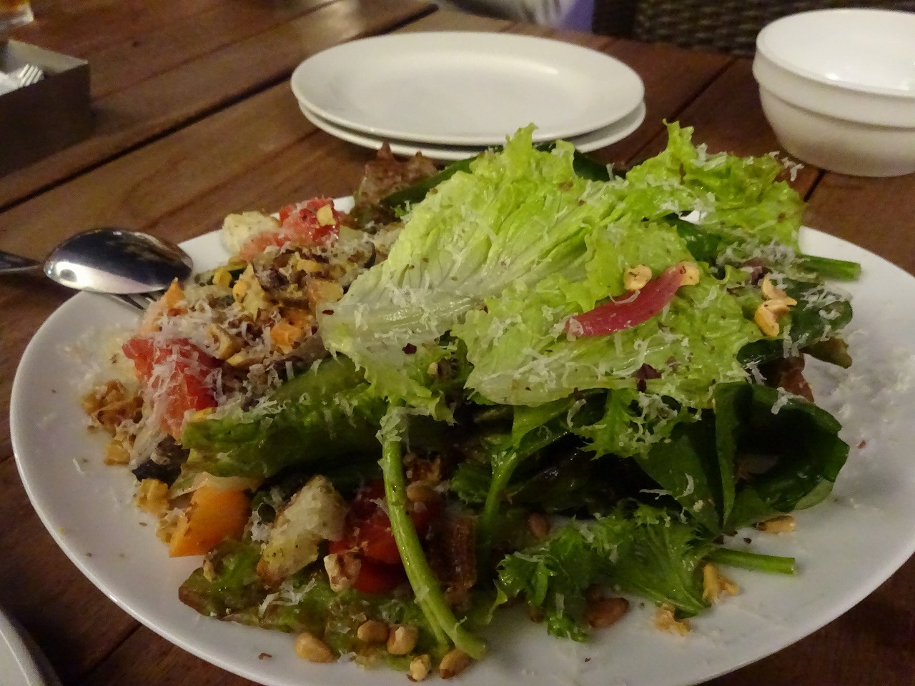 じゅにあと夜桜♪ Cheers! 明日もみなさまにとっていい一日でありますように♪ +++ かんぱ~い。 サラダ。 濃いピンクの桜。 ライトアップされた桜を見に人がいっぱい。 チーズフォンデュ風。 カツレツ。 ワイン。 チキン。 桜アップ。 パスタ。 パスタ。 デザート。 飲み過ぎ。 テラス席からの桜、とっ~ても綺麗でした。