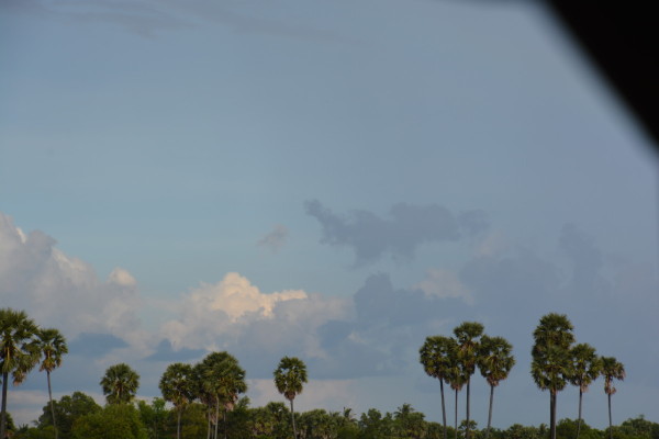 カンボジアのヤシの木は砂糖椰子。トップの方にだけまあるく葉っぱがついていてなんとなくかわいくておしゃれに見えます。