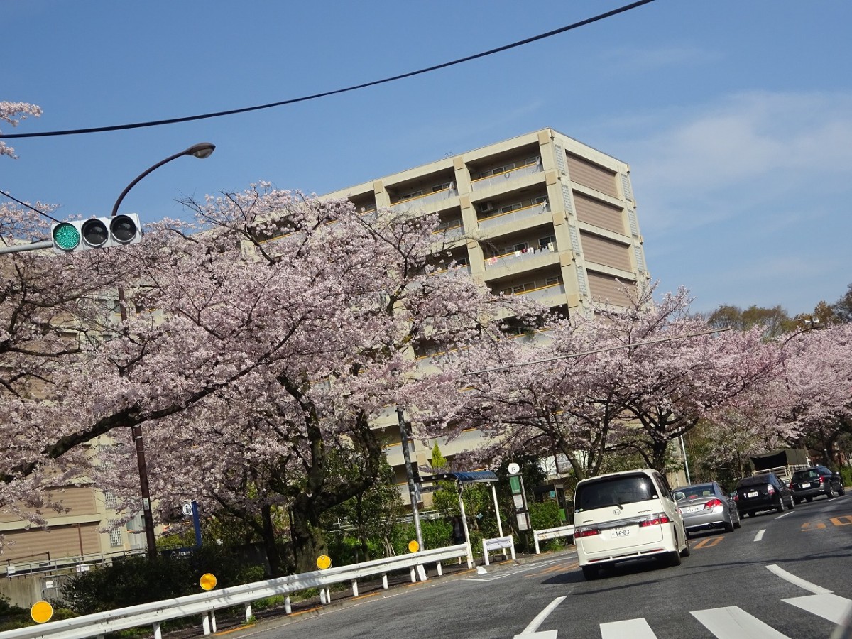 六本木ヒルズに囲まれて咲いている1本の桜。