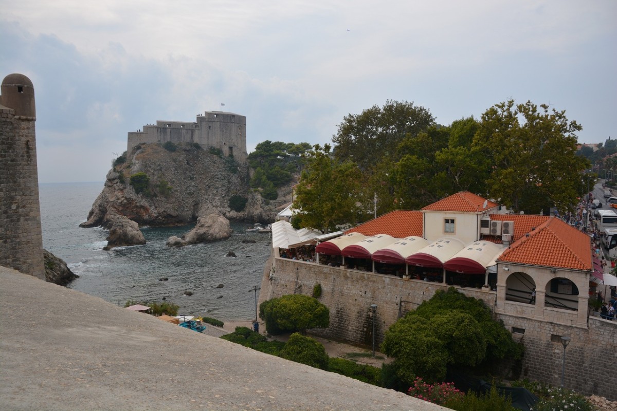 城壁ウォーキングの途中にはカフェがいっぱいありますが、うさぎたちが行った、たぶん海側では城壁のいちばん高いところにある、ロブリイェナツ要塞が間近に見えるカフェがいちばんだと思います。