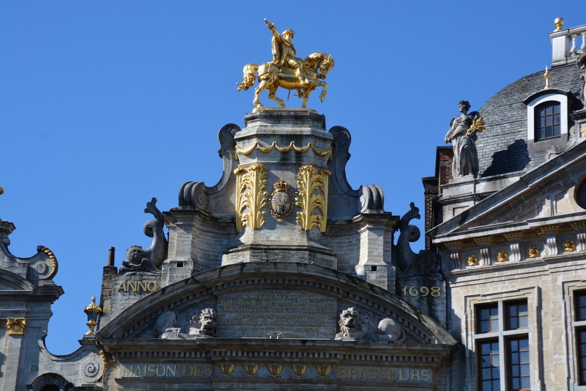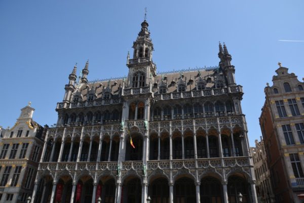 王の家 (la Maison du Roi) は、12世紀以降パン市場として親しまれた木造建築物で、それゆえオランダ語では「パンの家」(broodhuis) と呼ばれ、15世紀になると石造にかわり、ブラバント公の行政庁が置かれました。これが理由で人々はこの建物を「公の家」と呼ぶようになり、公がスペイン王になると「王の家」と呼ぶようになったそうです。のちにカール5世は自分の塔をゴシック様式で建てさせ、現在もその姿を見ることが出来ているように思ますが、実際には当時の塔も回廊も存在しません。1695年の砲撃などで損害を蒙ったためであり、現在のものは1875年にネオゴシック様式で再建されたものです。