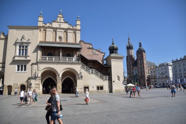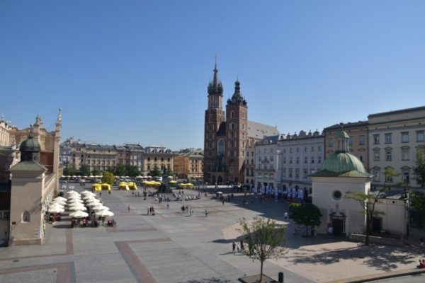 朝食をとってパッキングをして30分ほど時間があったので、クラクフ中央広場をもう一度楽しもうと、下に降りていきました。
